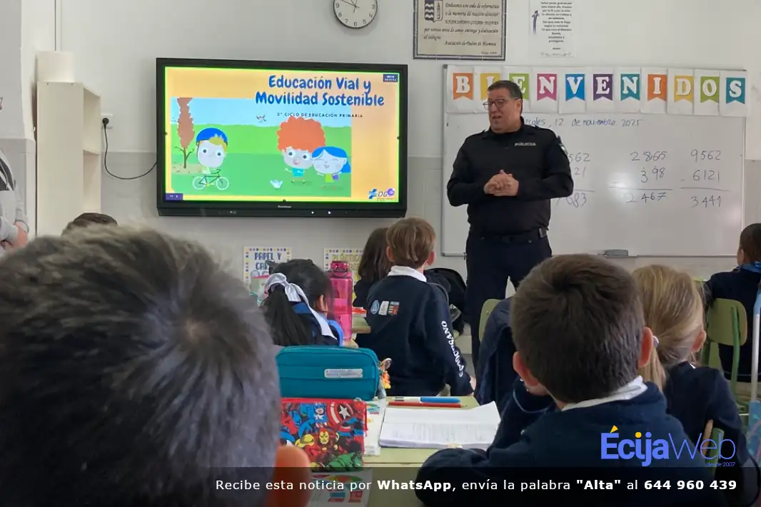 La Policía Local de Écija ha iniciado una sesiones formativas de educación vial y movilidad sostenible en centros educativos, centrados en el alumnado de educación Primaria. Con esta actividad se pretende que los alumnos comiencen a conocer el comportamiento que deben de tener en distintas situaciones, tanto como peatones, ciclistas o pasajeros.