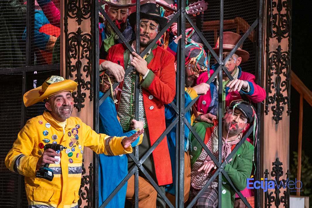 En el ascensor se han subido, junto a la chirigota «Al cielo con él«, de Écija, el cuarteto de Miguel Moreno y Gago «Ku Klux Klan Klan», primer premio en la modalidad de cuartetos, la chirigota «Comparsa los Calaita (fuimos a por tabaco), una chirigota de toda la vida», primer premio en su modalidad, la chirigota del Bizcocho «Los hermanos del buen fin» y la chirigota «Que sea lo que Dios quiera», de Antoñito Molina.