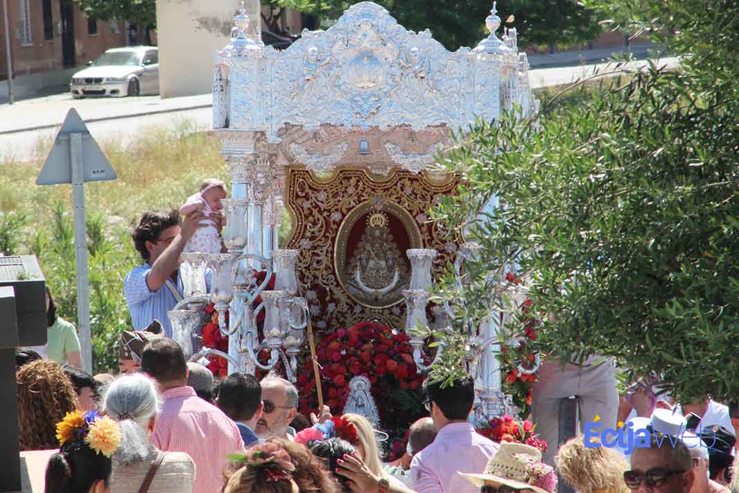 Como es habitual, la ciudad de Écija también ha acogido durante esta jornada el paso de la Hermandad del Rocío de Córdoba, la cual ha llegado hasta la rotonda de la Virgen del Rocío, poco después de la salida de la hermandad ecija.