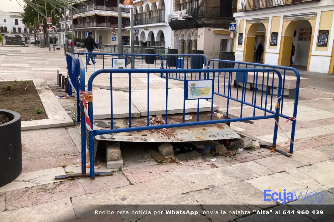 Al mismo tiempo, Gómez recuerda que dentro de unas semanas dará comienzo la Semana Santa y la Plaza de España «El Salón», es el centro neurálgico del paso de todas las cofradías ecijanas y desconocen las solución que se le va a dar «no sabemos si a esto le van a echar una lona, o le van a echar algo para que no se vea o le van a meter mano ya”