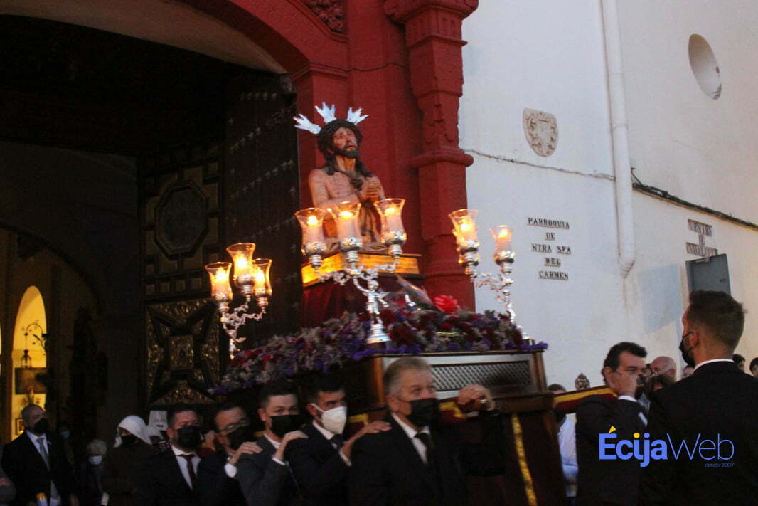 La imagen ha contado con el acompañamiento de un grupo de fieles, de la voces de varias Peregrinas de la Eucaristía, del convento de Las Marroquíes, y con una representación de voluntarios de Protección Civil, entidad de la que es patrón el Señor de las Penas, el cual ha portado una medalla recibida recientemente por la agrupación local, por su trabajo durante los peores momentos de la pandemia.