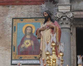 El 16 de Junio, festividad del Inmaculado Corazón de María, a las 20.00h de la tarde, se desarrollará Solemne Función Religiosa a la que continuará a partir de las 21.00h la procesión con la imagen del Sagrado Corazón de Jesús. El recorrido de la misma será el siguiente: salida, Plaza de España, Plaza de Santa María, Fernández Pintado, Santa Ángela de la Cruz, Cánovas del Castillo, Plaza de la Constitución, Fray Carlos Amigo Vallejo, Emilio Castelar, Jesús sin soga y Templo. El acompañamiento musical correrá a cargo de la A. M. Stmo Cristo de la Sagrada Columna y Azotes.