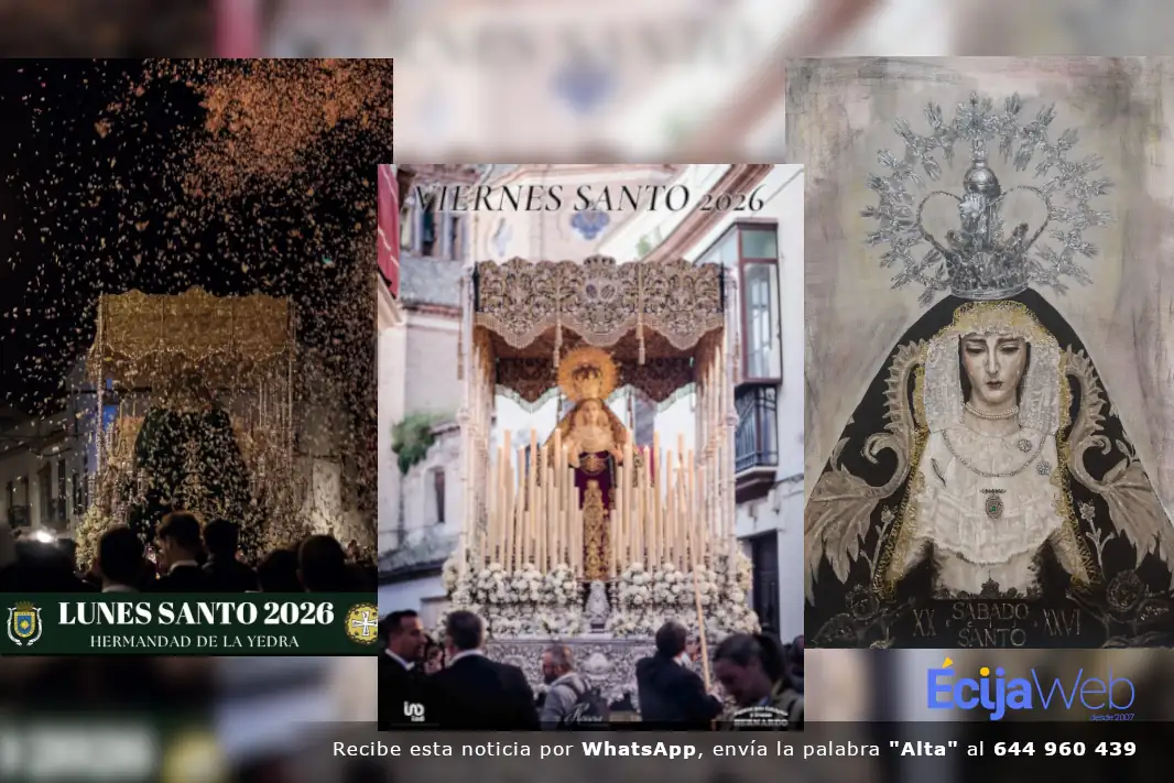 Durante el fin de semana hasta tres hermandades ecijanas han presentado sus propios carteles para Semana Santa, centrados en este caso en el día de su salida procesional, así como una tertulia cofrade. Es el caso de las hermandades de la Yedra, la Piedad, la Soledad y la tertulia cofrade «La Revirá de Odrería», que se suman de este modo a los ya presentados de las hermandades del Resucitado o San Gil, así como el de la tertulia cofrade «La Chicotá».