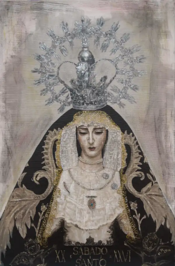 En otro punto de la ciudad, también el sábado, se presentaba el cartel del Viernes Santo, de la Hermandad de la Piedad, en la iglesia conventual de la Merced, una obra realizada en este caso por Javier Riego, quien también recoge la imagen del paso de palio, en este caso de la Virgen de la Piedad, a su paso por la calle Fernández Pintado.